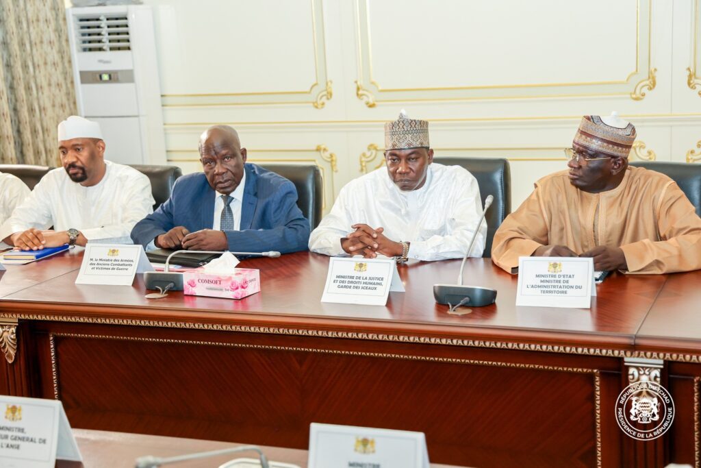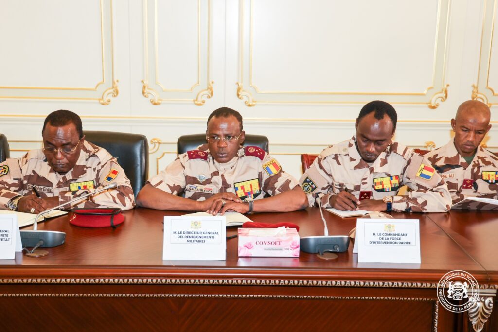 Sur initiative du Président de la République, Chef de l’État, Maréchal Mahamat Idriss Déby Itno, une réunion stratégique portant sur la sécurité des personnes et des biens à travers tout le territoire national s’est tenue cet après-midi au Palais Toumaï. Y ont pris part le Premier Ministre, Ambassadeur Allah-Maye Halina, plusieurs ministres concernés, les commandants des principales formations militaires, les hauts responsables de la sécurité nationale ainsi que le Procureur de la République.
